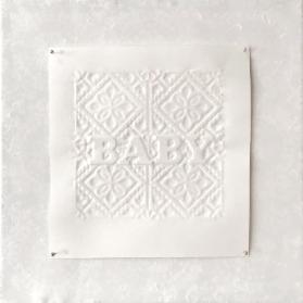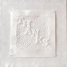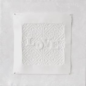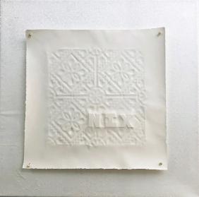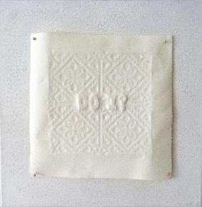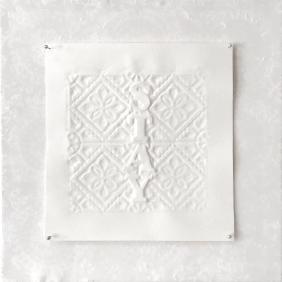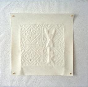 Hand-embossed paper, organza textile, acrylic paint, on canvas