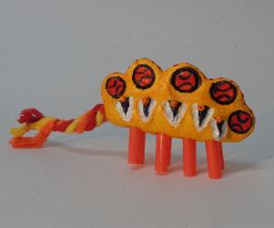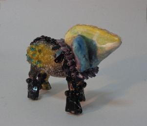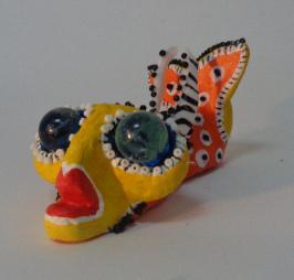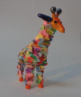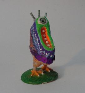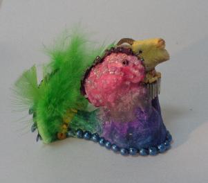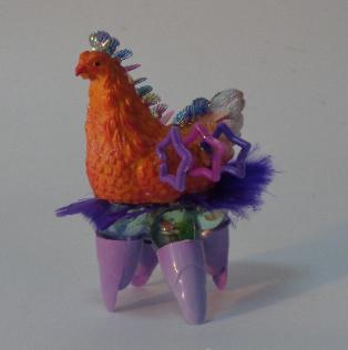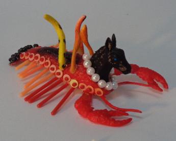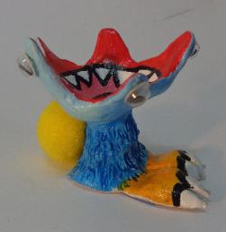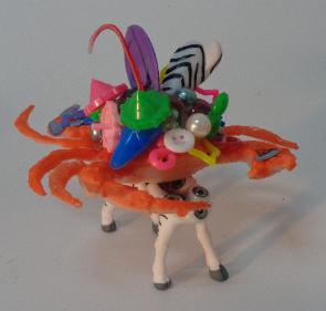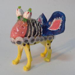 Mixed media sculptures: air dry clay, plastic toys, beads, sequence, acrylic paint