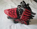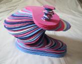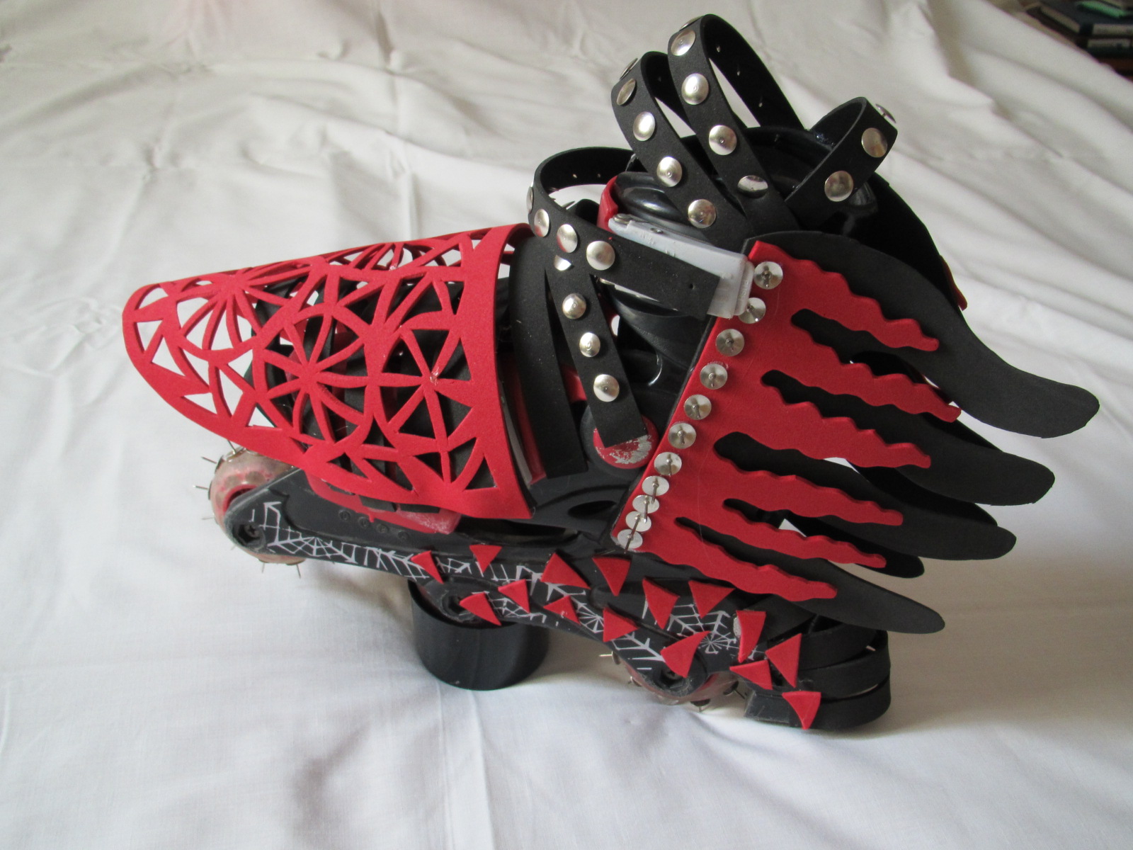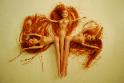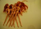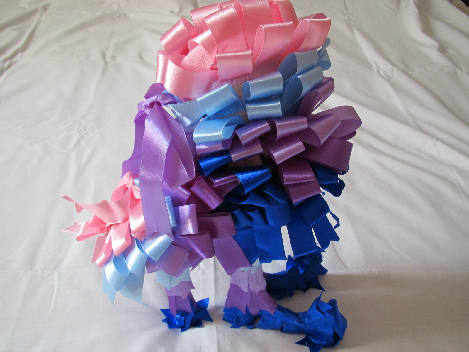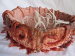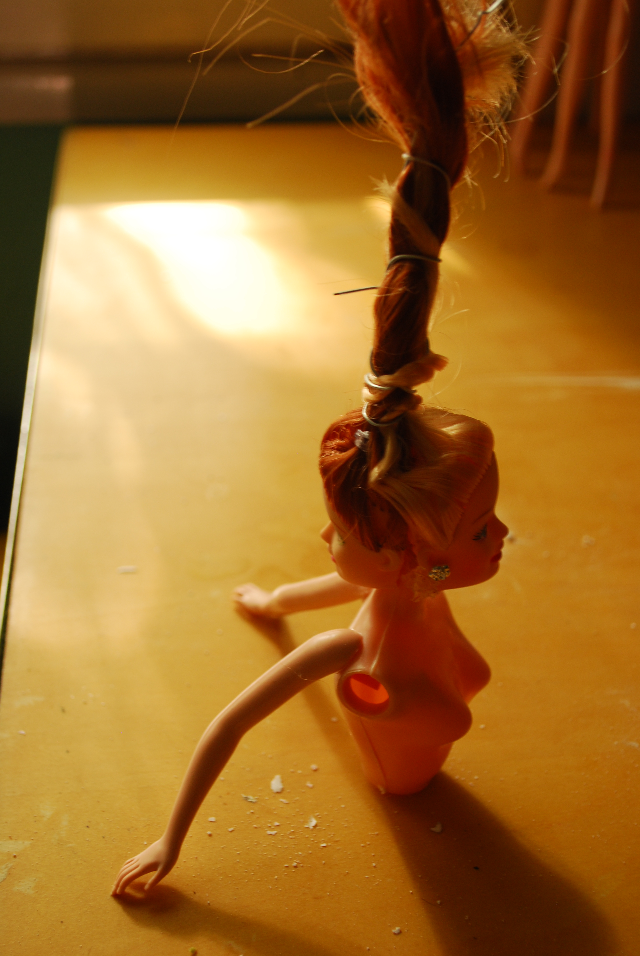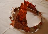 paper mache sheets, feathers, wool plastic tubing paper, newspaper plaster of paris cast