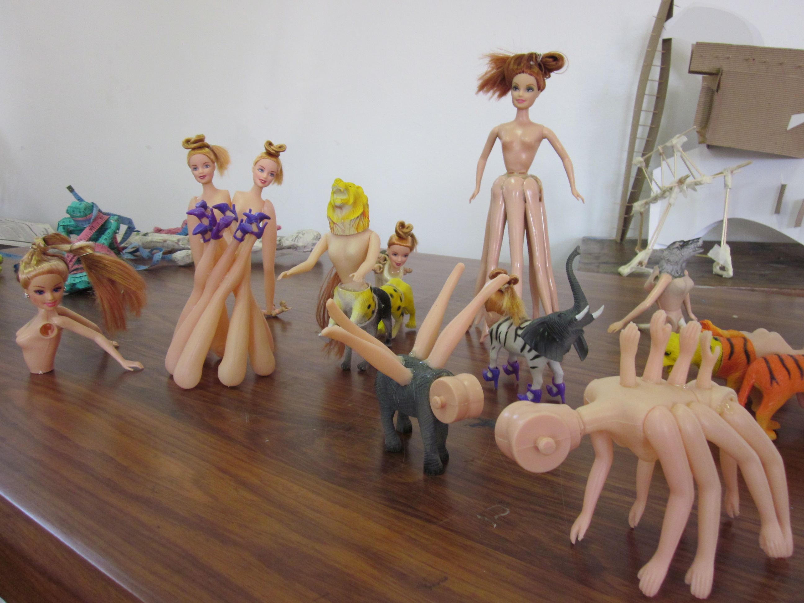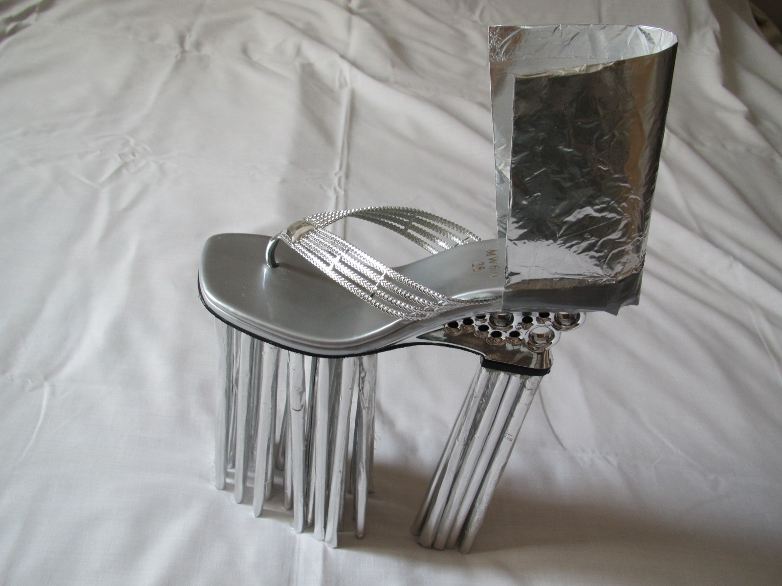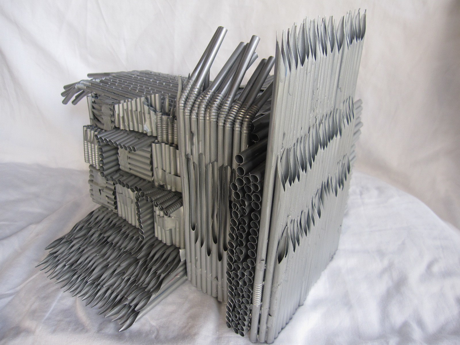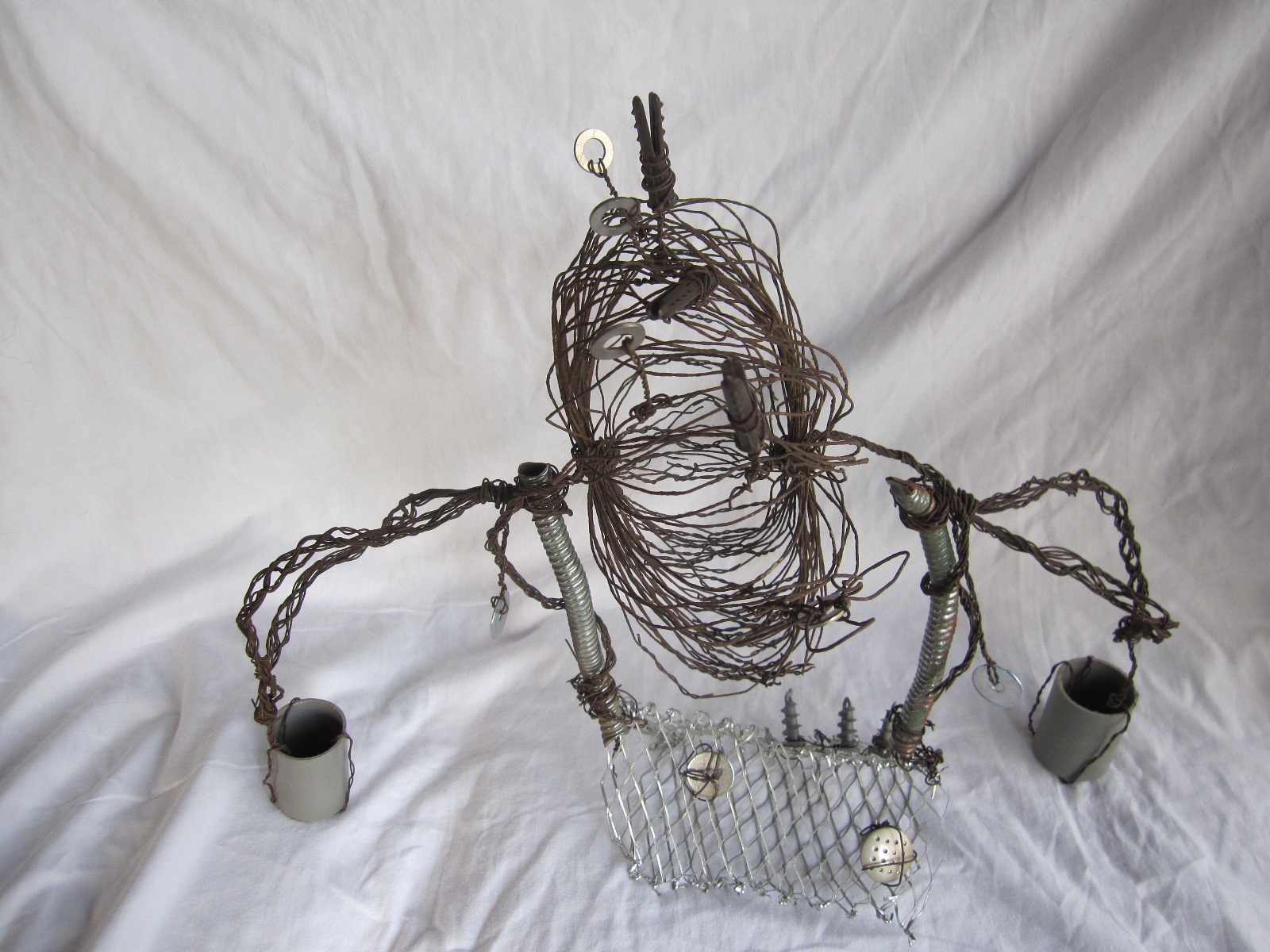Wires & found objects, Straws, silver paint Clay, candle wax Paper mache, measuring tape